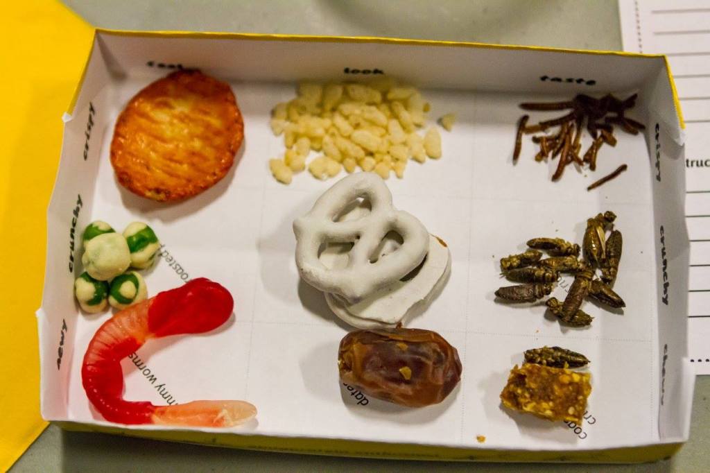 To introduce participants to the texture of insects, each participant was given a tray of familiar snacks that are crispy, crunchy, and chewy plus a score card to reflect on their tasting experience.